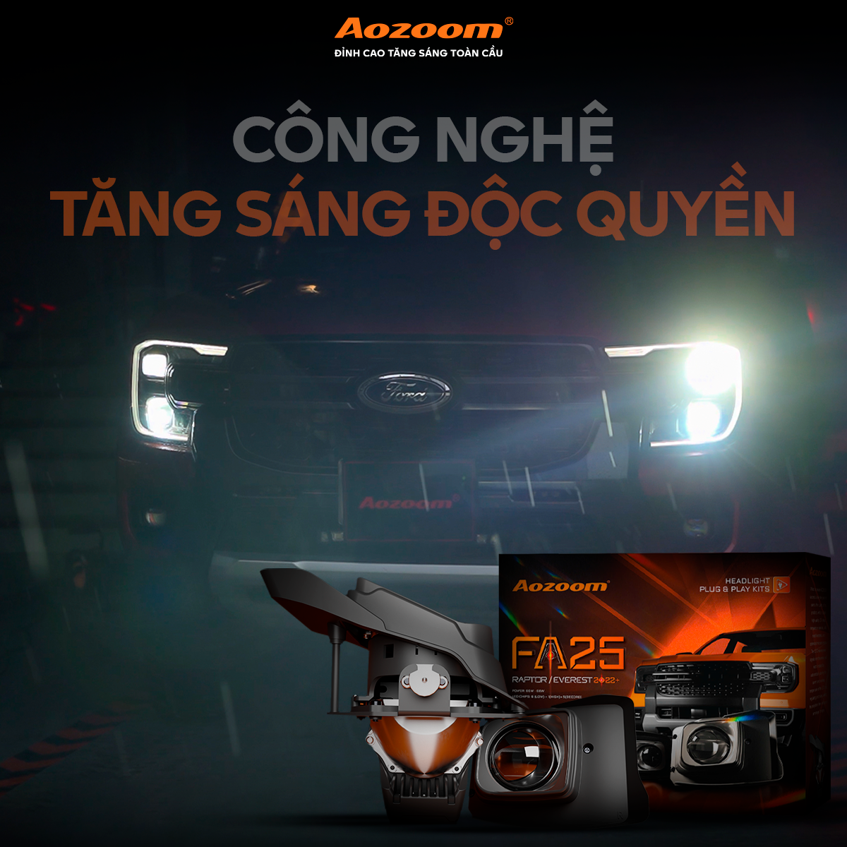 Được nghiên cứu và phát triển dành riêng cho nền tảng của Ford Ranger và Everest thế hệ mới, bộ kit AOZOOM FA25 là một giải pháp kỹ thuật toàn diện, cho phép bạn nâng cấp sức mạnh chiếu sáng mà không phải hy sinh bất kỳ tính năng nguyên bản nào.