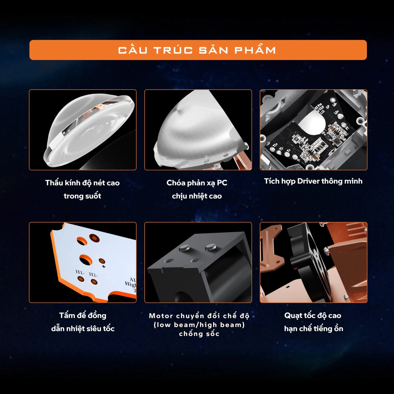 Quạt tản nhiệt công suất cao 12V - 0.15A phía sau, tối ưu lượng gió đến các chi tiết đèn.