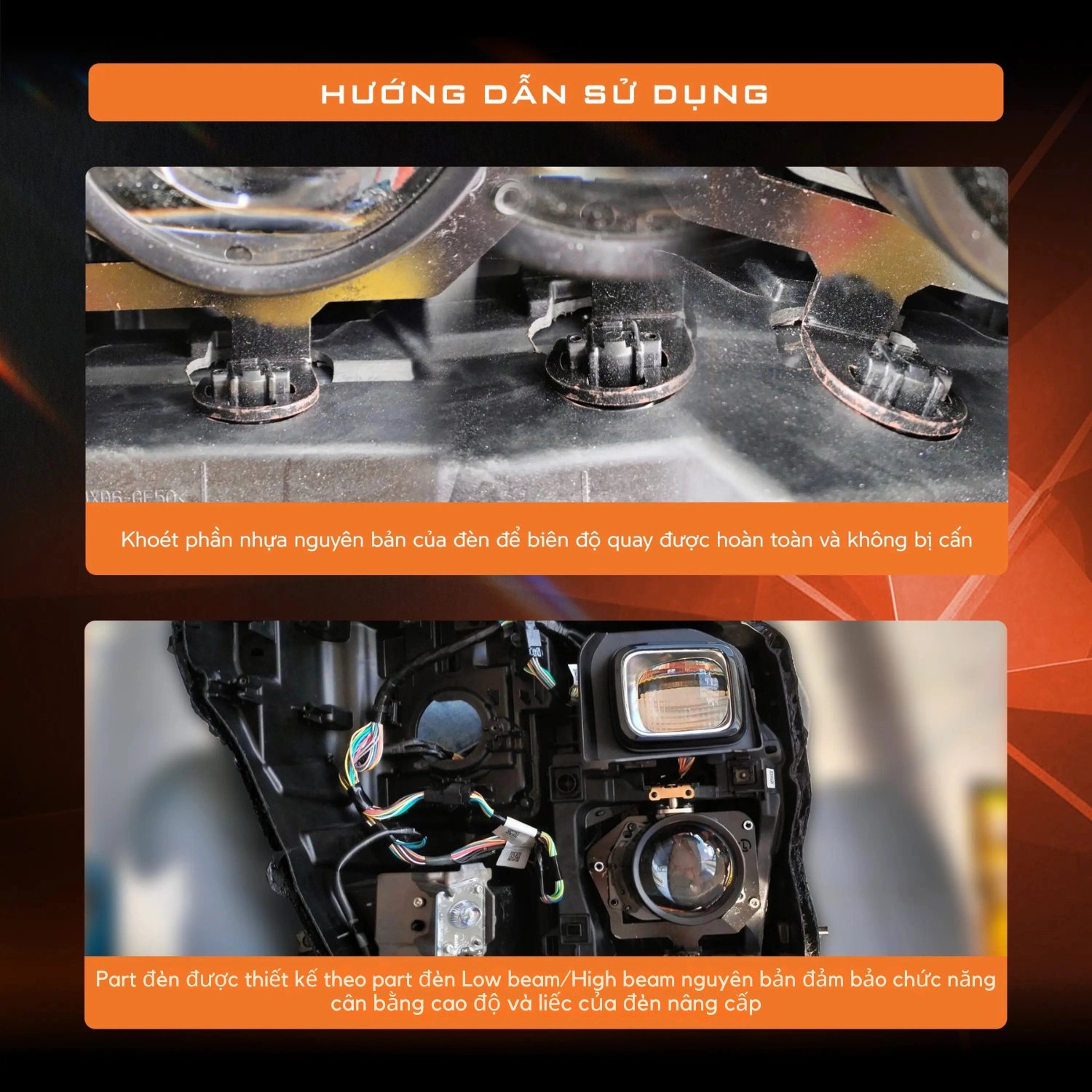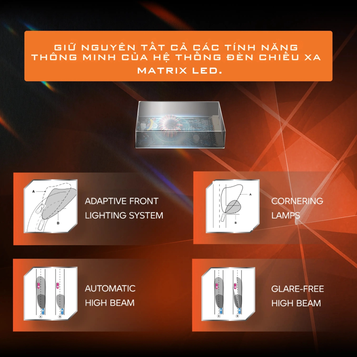 Giải pháp nâng cấp dành riêng cho cụm đèn ở vị trí đèn chiếu gần (cos) hỗ trợ chiếu xa mà vẫn giữ nguyên vẹn các tính năng Matrix LED nguyên bản trên xe nhờ vào kết cấu đặc trưng.