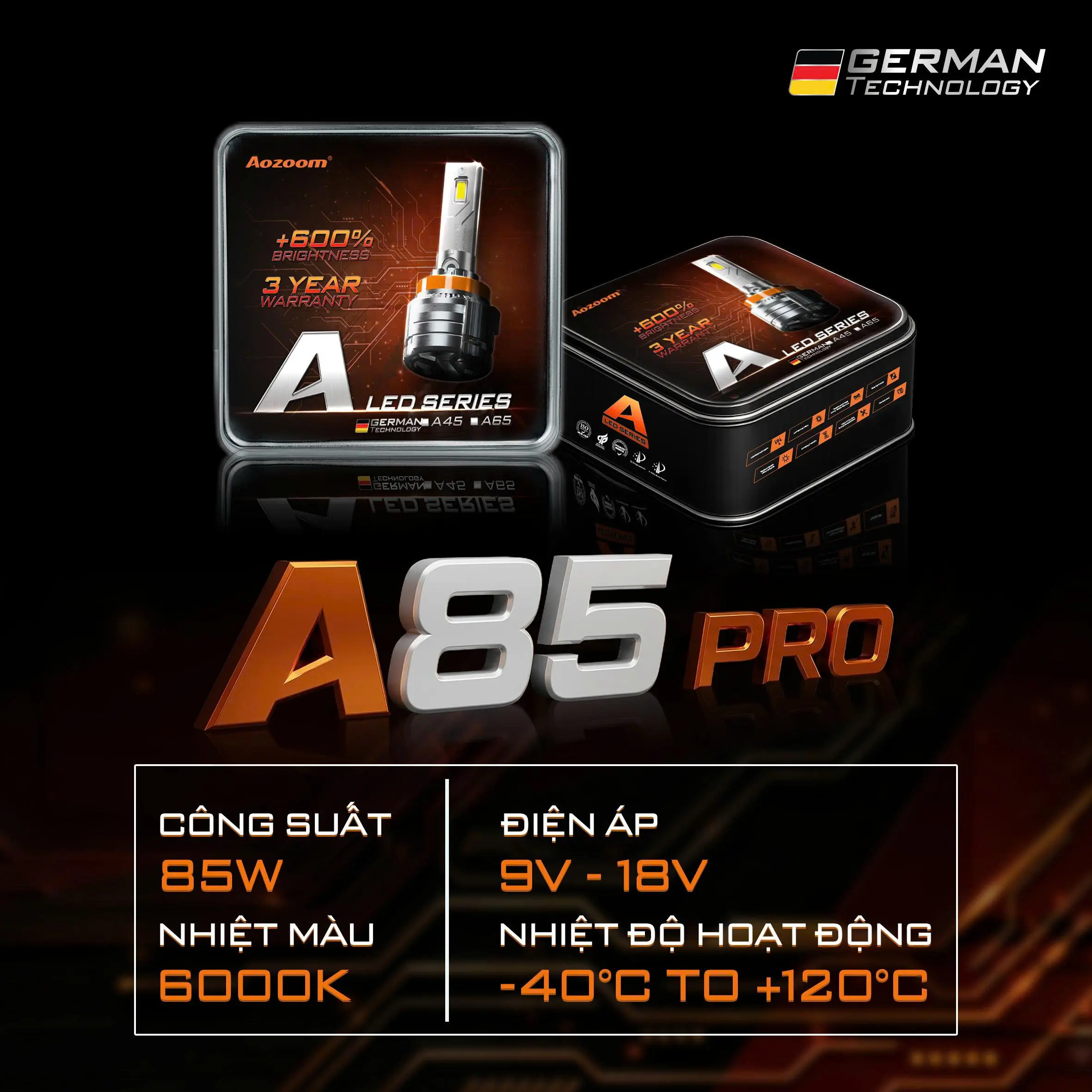 A85 PRO phiên bản nâng cấp cho những chủ xe đang tìm kiếm giải pháp nâng cấp hoàn thiện. Bóng LED A85 PRO sở hữu công nghệ AOZOOM với ánh sáng tối ưu, để mỗi chuyến đi đêm không còn là thử thách, mà là một cuộc thưởng ngoạn đầy hứng khởi và an toàn.