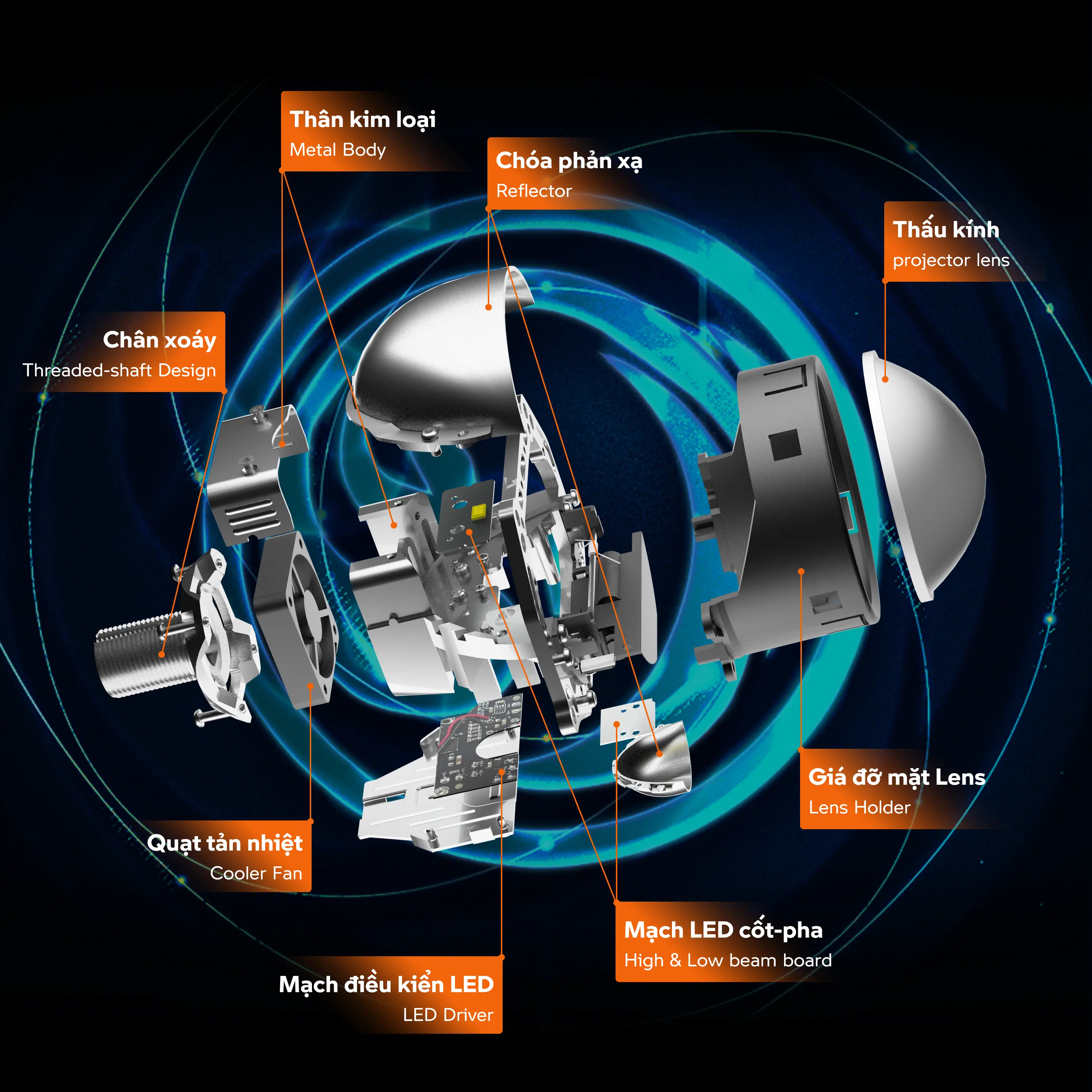 Thủy biểu trưng cho nước, sự linh hoạt và sự mềm mại. BI-LED Chân xoáy DELTA được thiết kế với cấu tạo chân xoáy thông minh, giúp việc lắp đặt trở nên đơn giản hơn bao giờ hết, ngay cả trên những dòng xe có cấu trúc phức tạp. Không còn những lo lắng về việc chế cháo, cắt khoét hay ảnh hưởng đến hệ thống điện nguyên bản, DELTA TRIGRAMS mang đến trải nghiệm nâng cấp ánh sáng an toàn và bền bỉ trên mọi dòng xe.