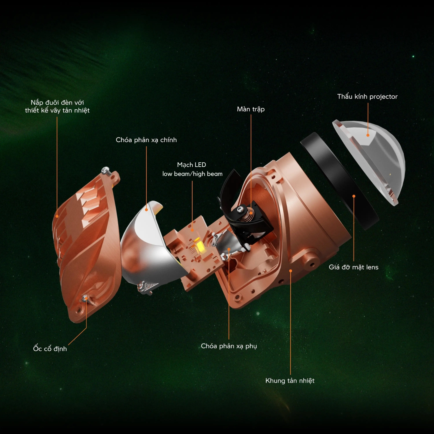 3.0inch vừa vặn, cân bằng nhờ phần đuôi đèn được thiết kế các rãnh tản nhiệt, dễ dàng lắp đặt vào nhiều loại xe.
