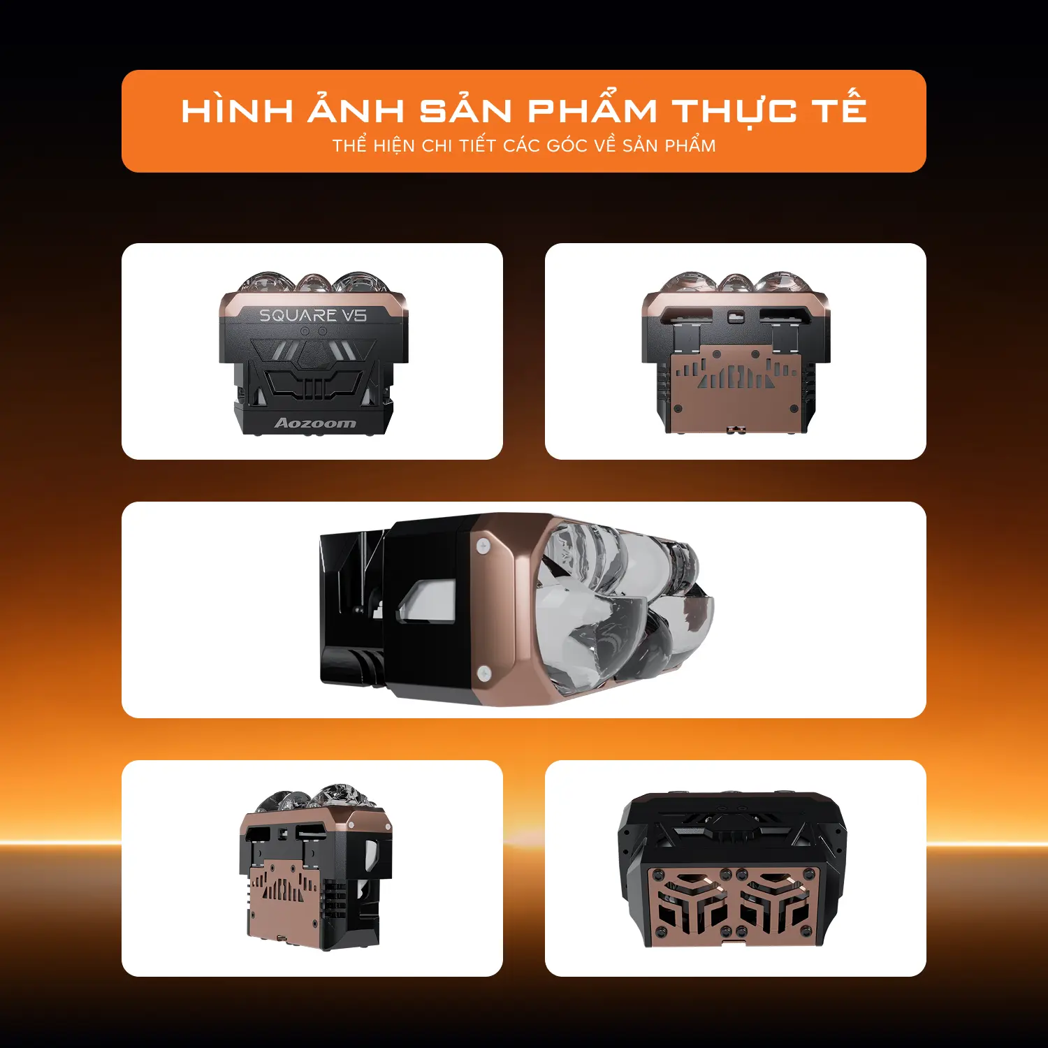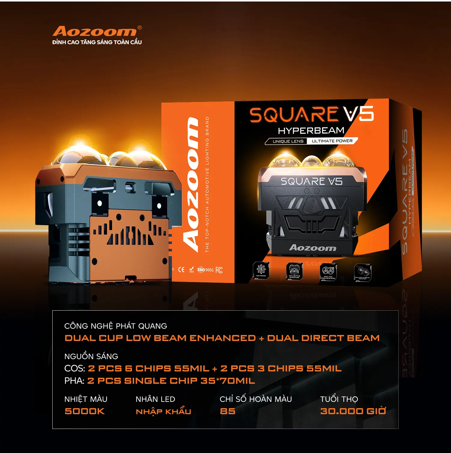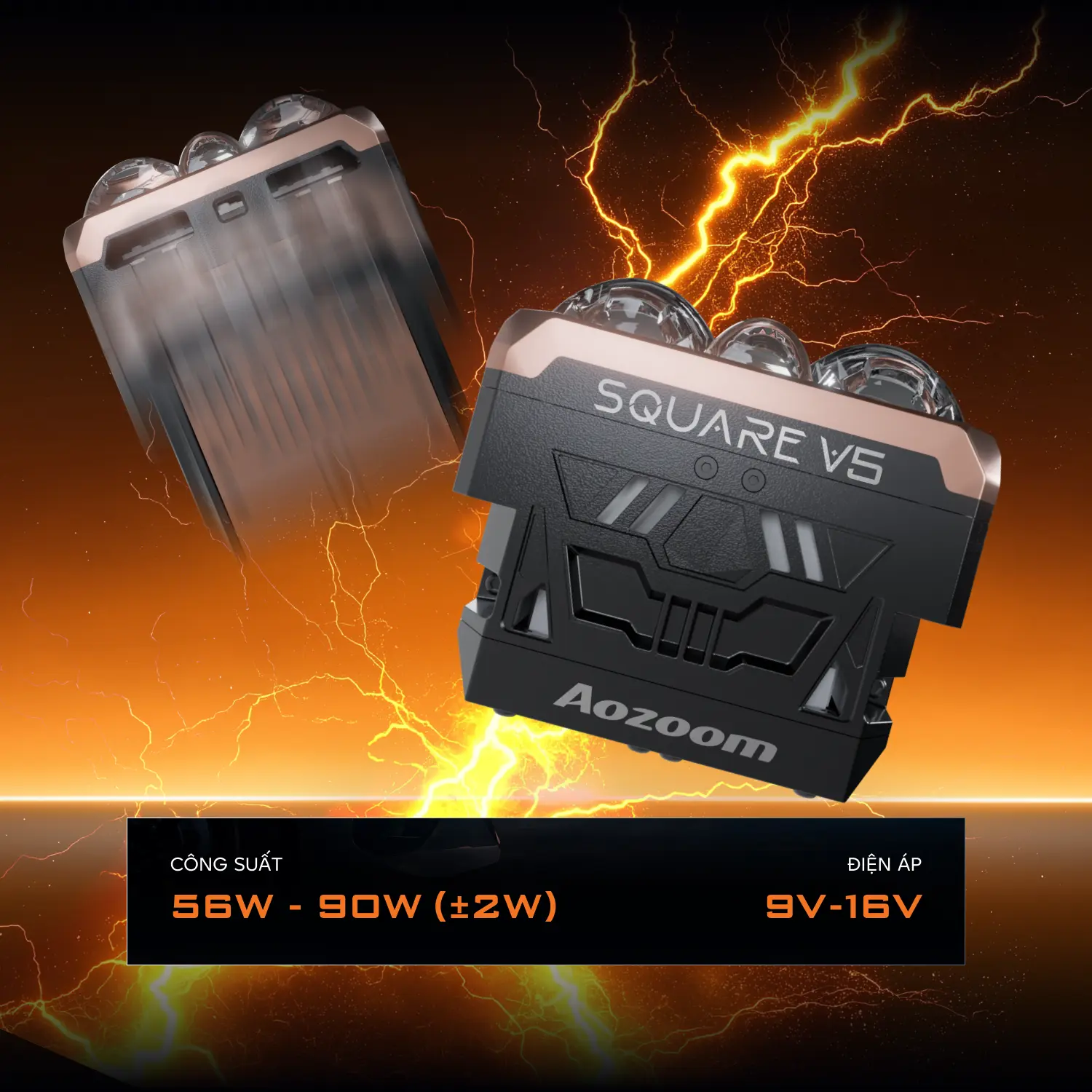 SQUARE V5 sở hữu thiết kế thấu kính đa diện độc đáo cùng nguồn sáng đa lõi phức hợp hiệu suất cao cho khả năng pha xa bứt phá. Công nghệ DUAL CUP tăng cường và chip IDL LED bản lớn chiếu sáng trực tiếp, kết hợp mặt kính đa điểm đặc biệt giúp phân bổ ánh sáng đều, sắc nét và tập trung. Hệ thống làm mát kép Dual-Fan duy trì hiệu suất ổn định, đảm bảo độ bền vượt trội. Với sự kết hợp giữa sức mạnh - công nghệ - độ bền, SQUARE V5 định nghĩa chuẩn mực mới cho đèn Bi-LED lens vuông độc bản, mang đến trải nghiệm lái xe an toàn và đẳng cấp trong mọi hành trình đêm.