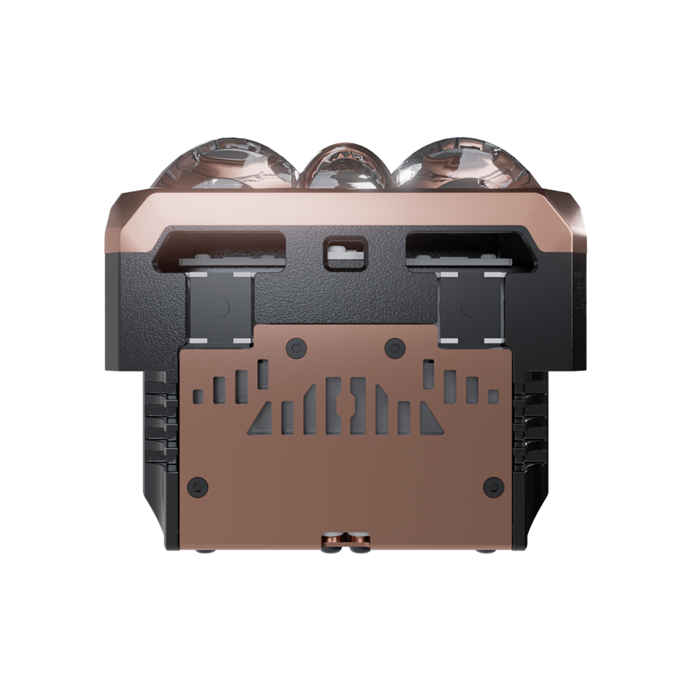 Các rãnh tản nhiệt được bố trí một cách khoa học dọc thân đèn, tạo thành những kênh dẫn khí tự nhiên, hoạt động cộng hưởng hoàn hảo với hệ thống quạt kép.